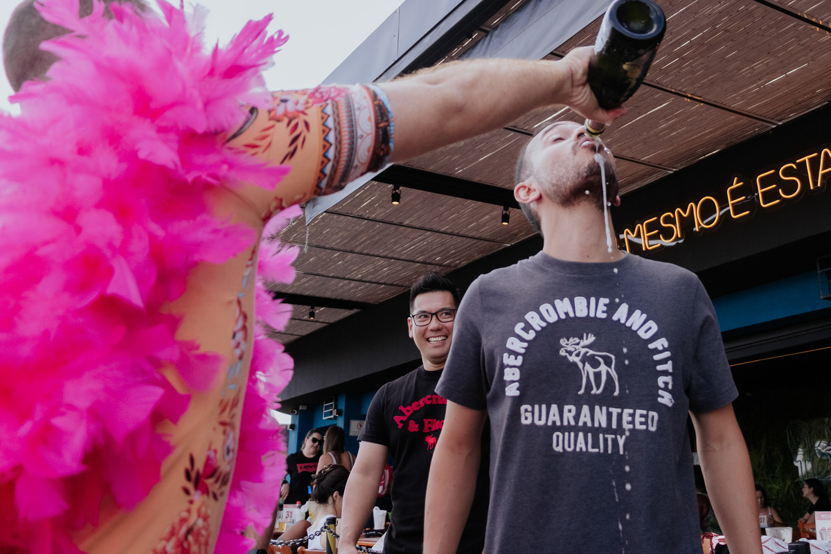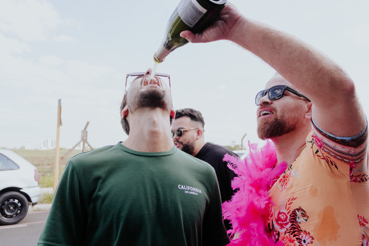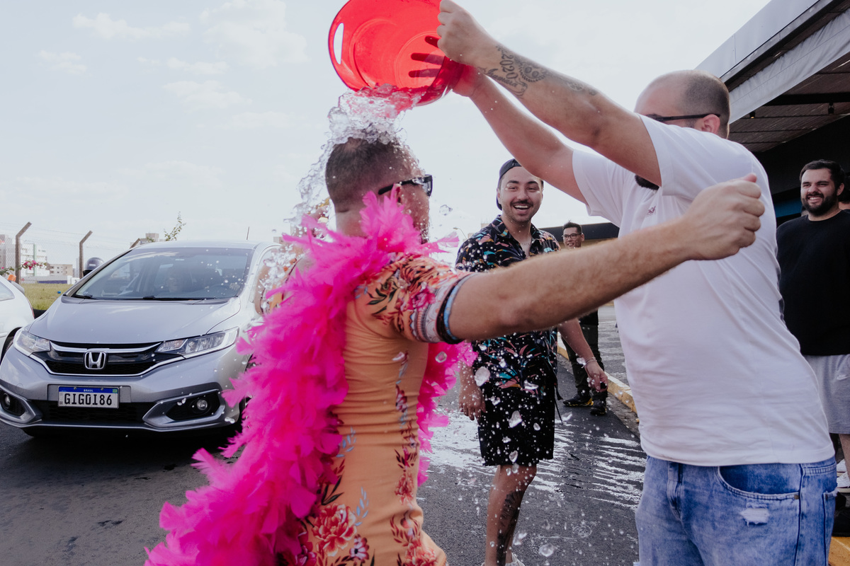 Pelas fotos da minha incrível parceira de trabalho Thaís Augusto Fotografia, já deu pra notar que a despedida de solteiro do João foi INSANA, né? Acho que este foi o momento mais maluco de todo nosso processo de interação com o casal.
